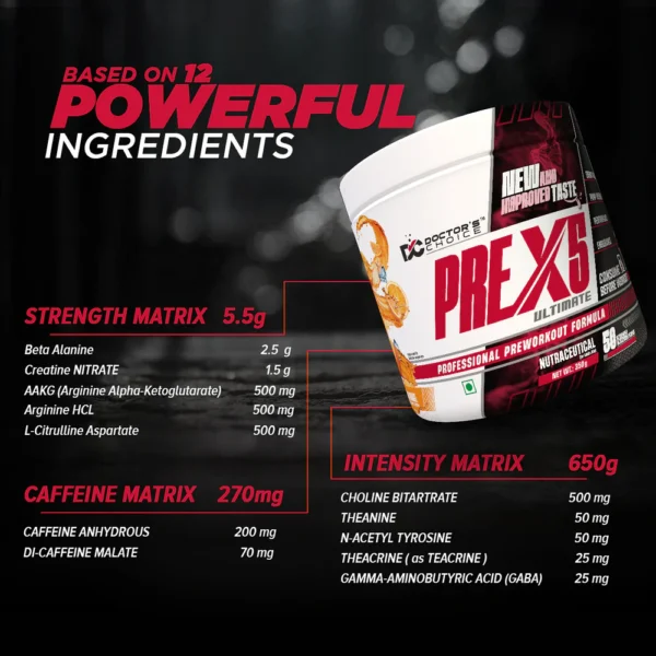 Doctor’s Choice L-Citrulline, Creatine PRE-X5 Ultimate Professional Pre-Workout Formula 350gm [50 Servings – Tropical Orange]